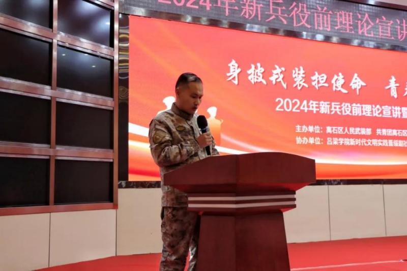 3月7日米兰app体育官方入口下载新时代文明实践晋绥剧社小分队赴离石区武装部慰问活动“身披戎装担使命 青春无悔踏征程”2024年新兵役前理论宣讲暨文艺慰问活动。离石区人武部政委朱兴星、共青团离石区委书记郝倩、共青团离石区委副书记冯育健、米兰app体育官方入口下载团委副书记郝亚琼、米兰app体育官方入口下载师生以及2024年役前新兵参加此次活动。