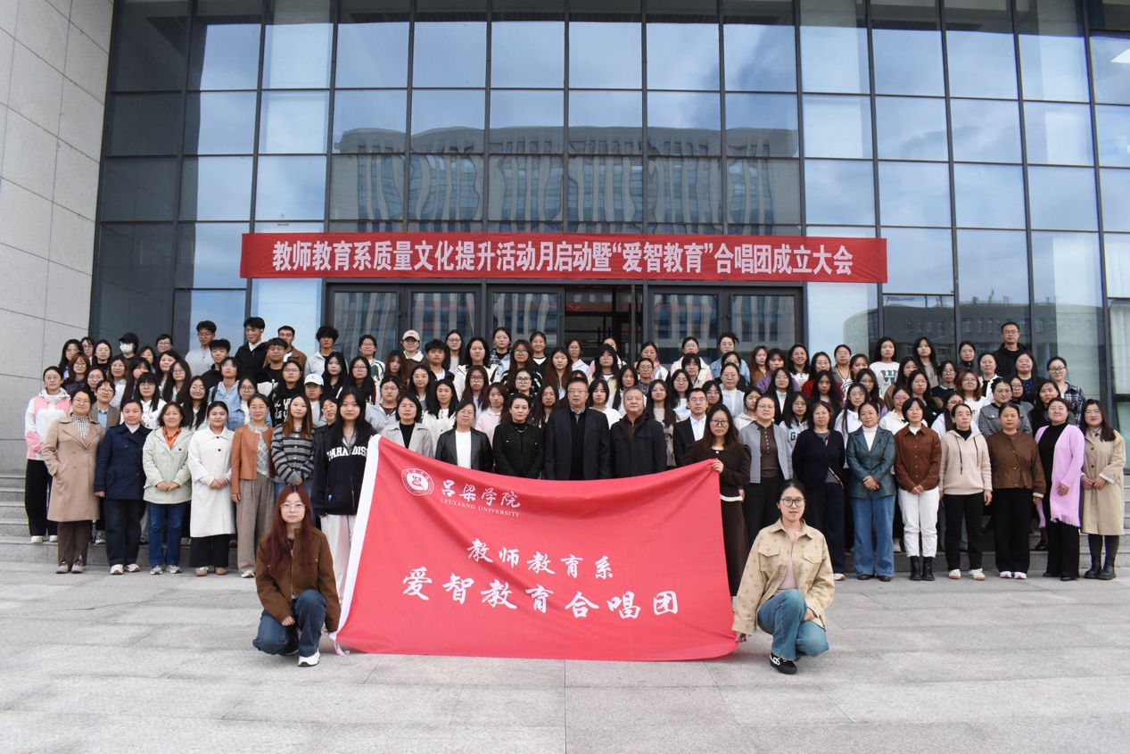10月14日,教师教育系在弘礼楼前举行质量文化提升活动月启动仪式暨“爱智教育”合唱团成立大会,校团委副书记、米兰app体育官方入口下载新时代文明实践晋绥剧社社长郝亚琼,合唱团指导老师、艺术系李晓军,全系教职员工参加活动。